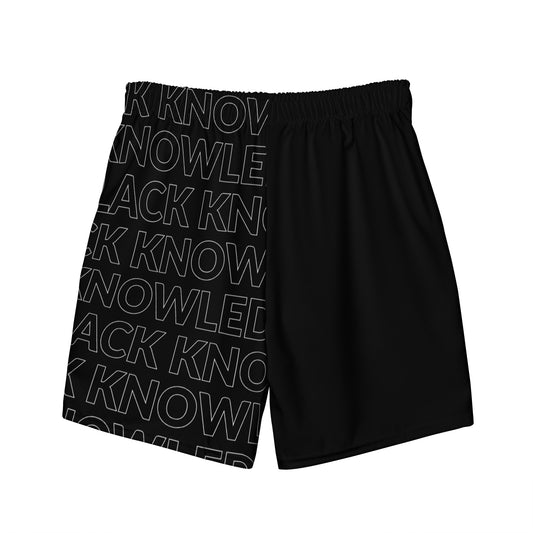 Black Knowledge Text Swim Trunks